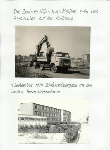 1974 war sie reif für ein neues Schulgebäude. Die (damals so genannte) „Zentrale Hilfsschule Meißen“ zog um und bekam ein neues Zuhause auf dem Kalkberg.