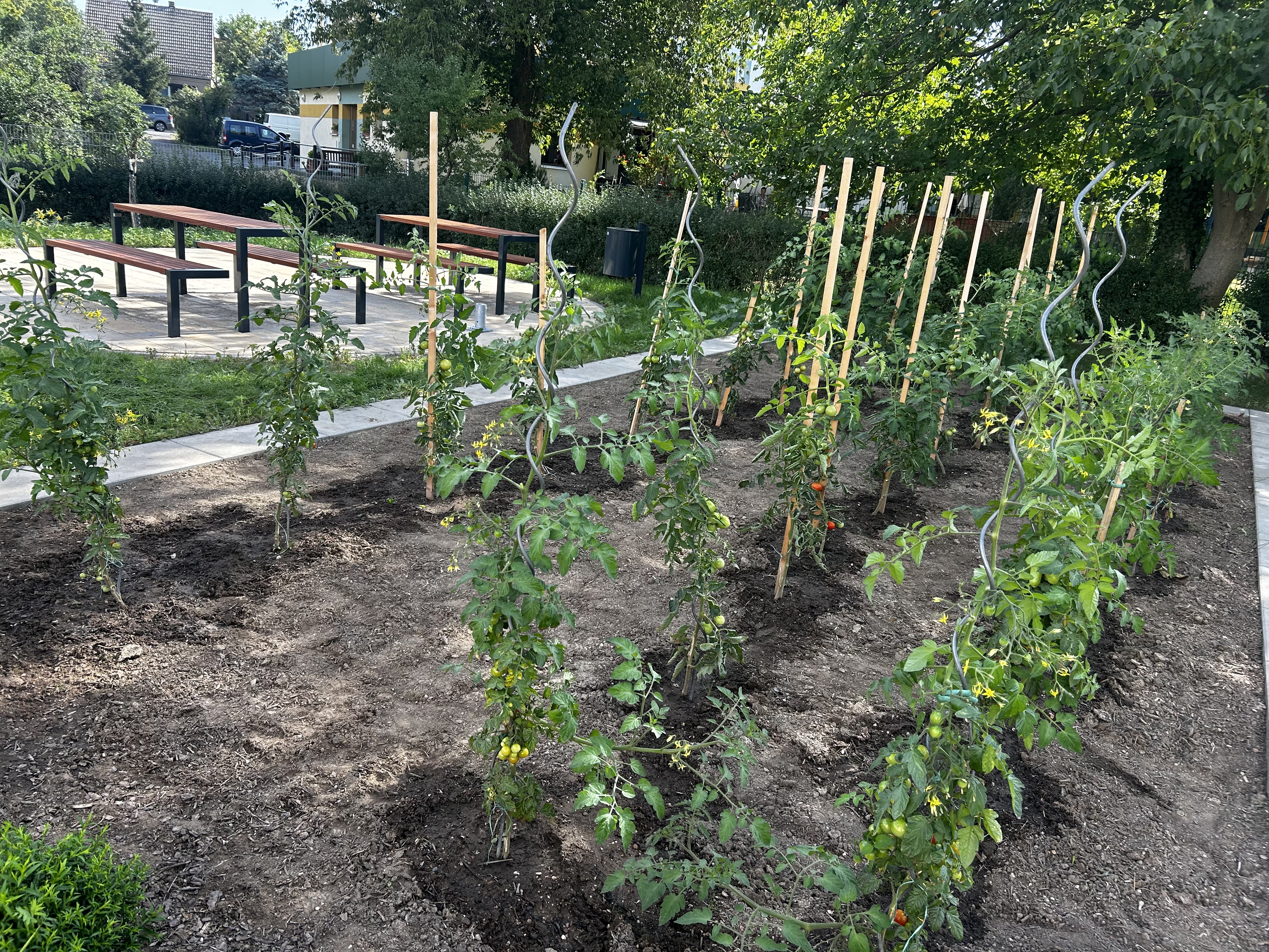 Bei dem Schulgarten-Wettbewerb des Burda-Verlags hat unsere Schulgarten-GTA-Gruppe den Hauptpreis gewonnen. Der Küchenchef des Relais & Châteaux Hotel Bülow Palais, Sven Vogel, kam zu Besuch. Gemeinsam mit seinem Kollegen Alexander Schramm kochte er mit den Kindern.